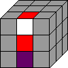If it is like the left diagram, then you will need to do this move: F'' (That means turn the front face a half turn). If you dont understand this terminology, make sure you read my Terms to know page. If it is like the right picture then you need to do this move: U'R'FR (Turn the UP face counterclockwise, then the RIGHT face counterclockwise, then the FRONT face clockwise, and then the RIGHT face clockwise) Notice that the piece in the top layer moved into the purple spot. Now, lets say that the edge piece is in the middle layer: